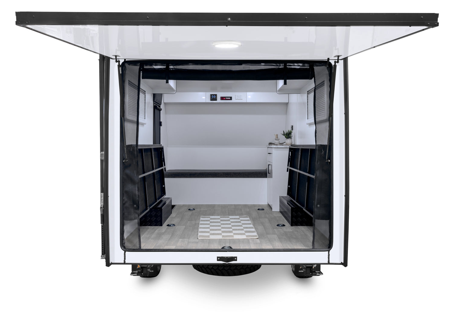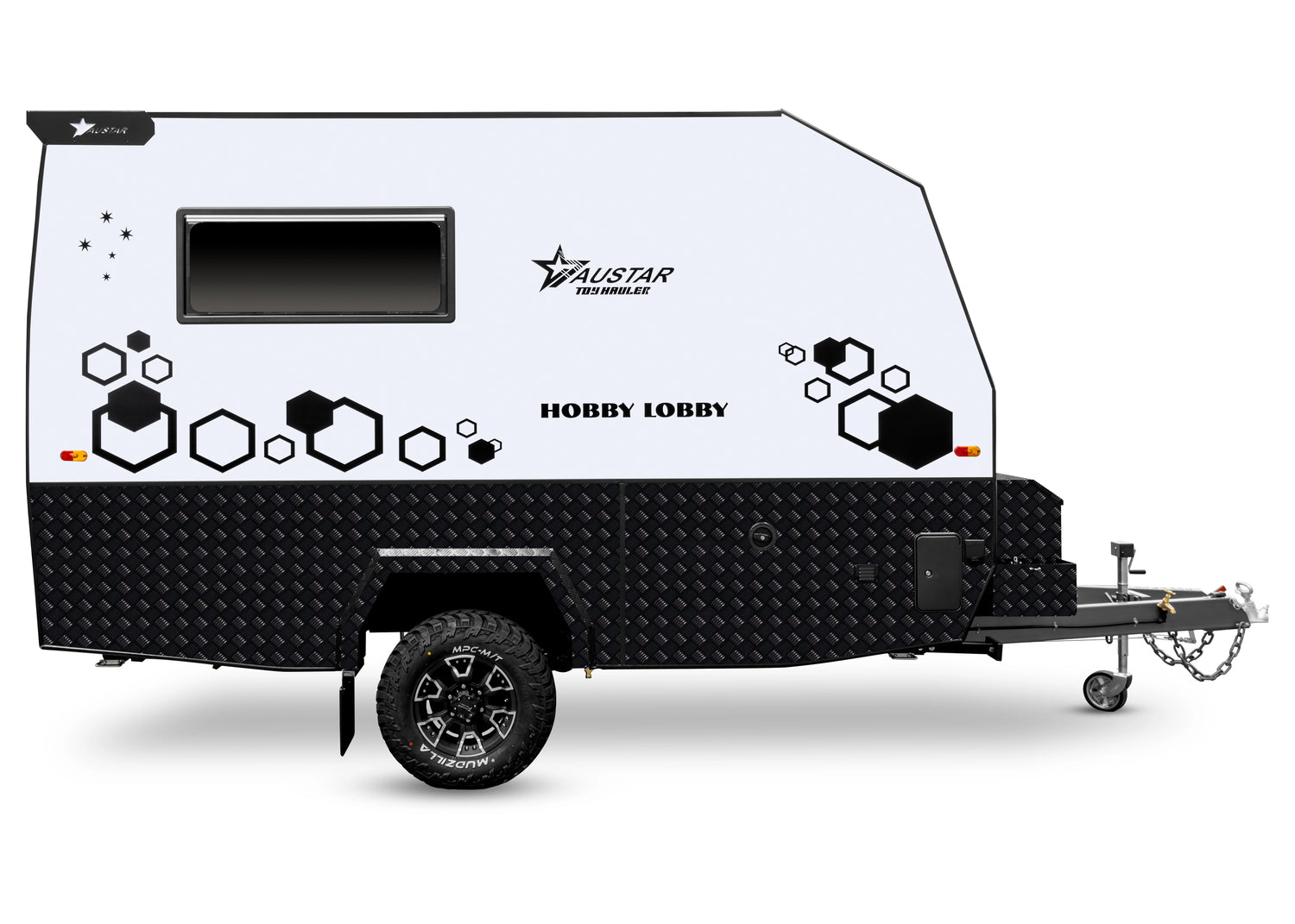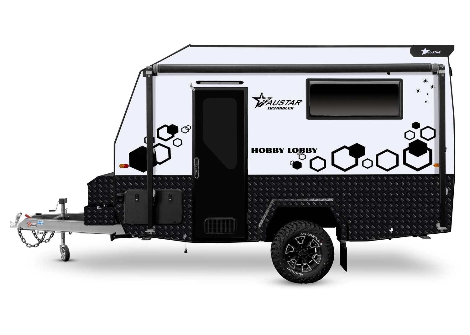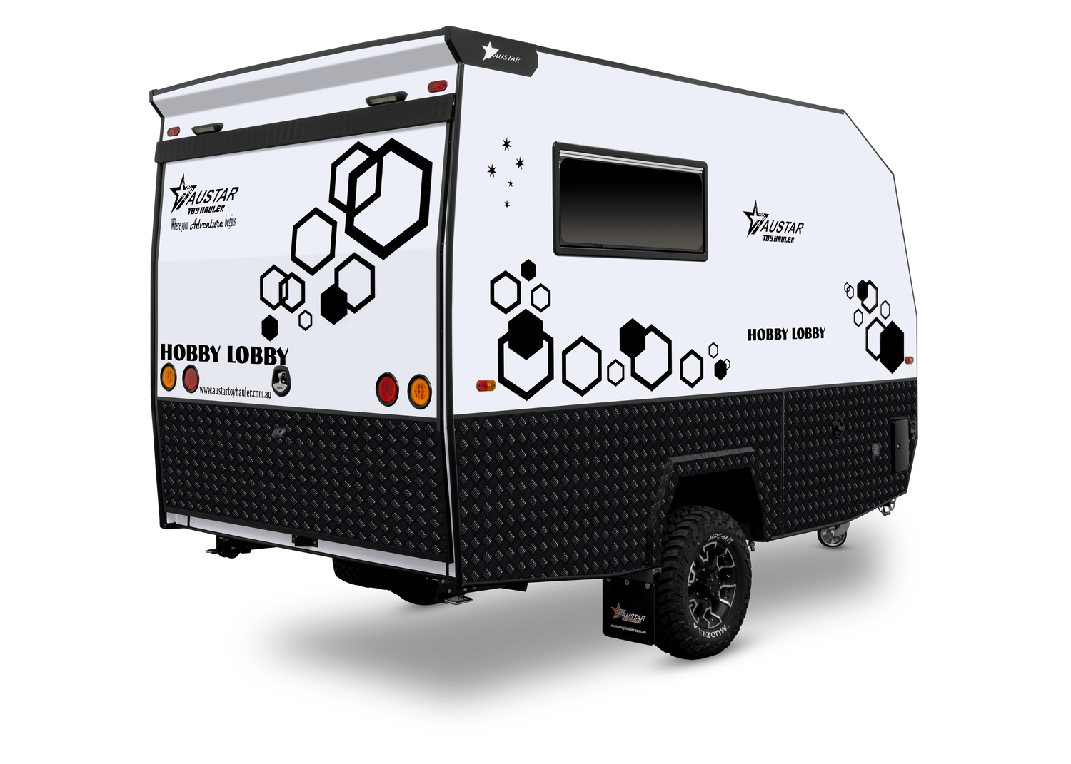 Built with durability in mind some key features include an internal kitchenette, storage cupboards, ample space for dirt bikes, kayaks, and more, making it perfect for weekend getaways or extended trips. Whether you’re heading to the mountains, the beach, or your favourite off-road trails, the 12FT Hobby Lobby Rider Toy Hauler offers the convenience and reliability you need for all your outdoor adventures.