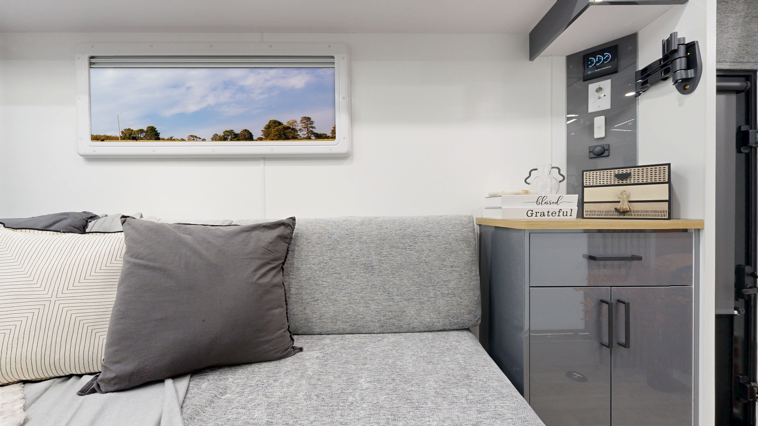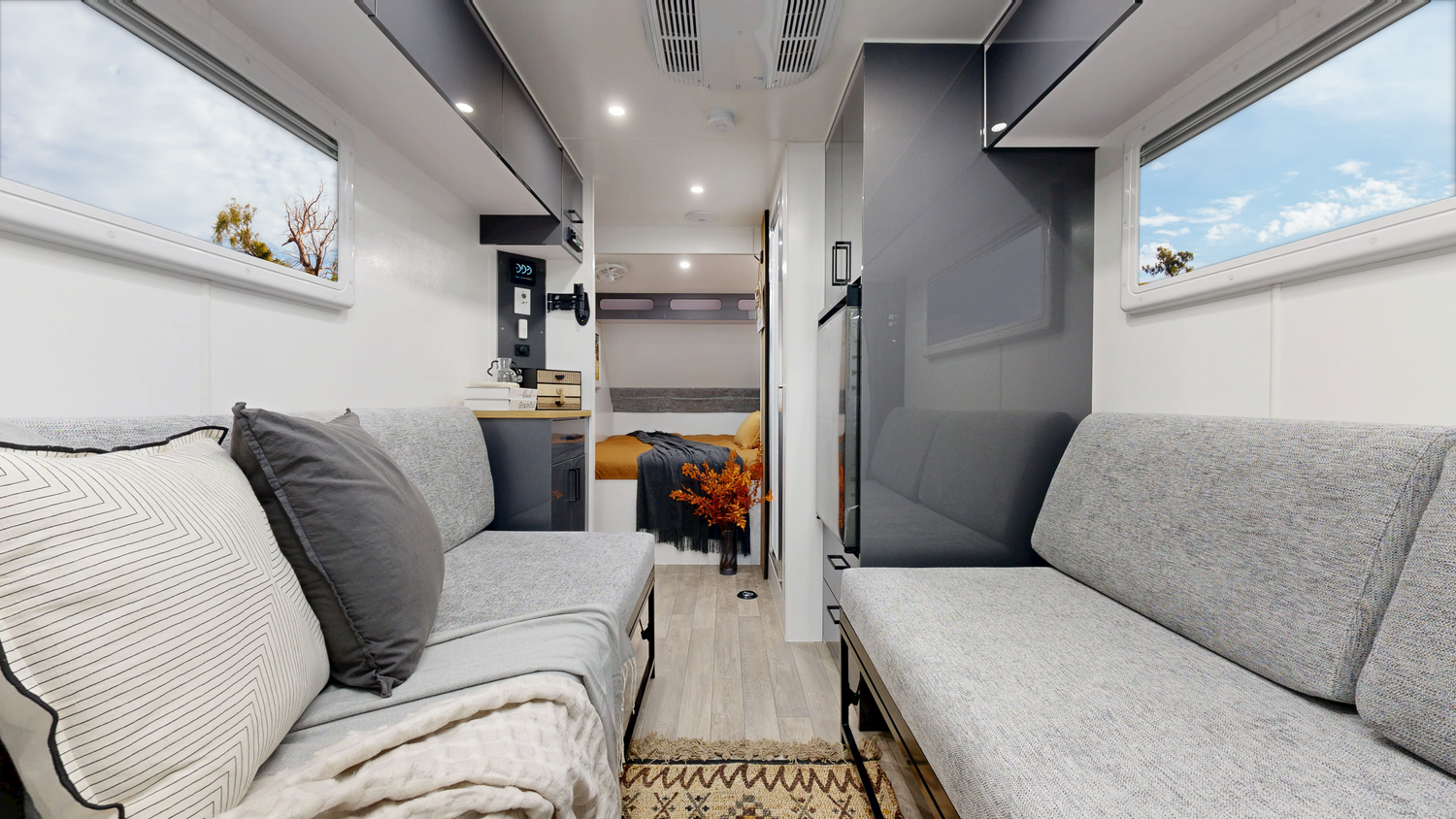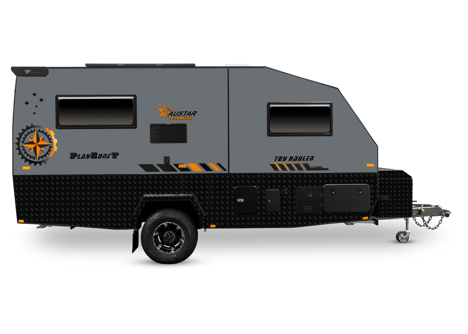 Experience the convenience of having your personal facilities on board. The Playzone T features a fully equipped internal shower and toilet combo, providing a private space for freshening up on the go. Say goodbye to roadside rest stops and embrace the freedom of having your own amenities wherever your travels take you. The Playzone T is our customer favourite Toy Hauler model bringing your favorite toys along has never been this easy. The Playzone T features dedicated storage spaces with secure tie-downs, providing a safe and organized haven for everything from bikes to go-karts. Now you can hit the road with all your gear, creating unforgettable memories without compromise.